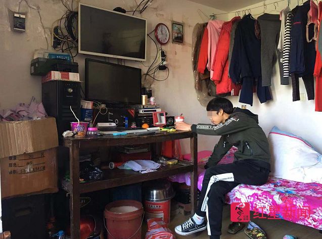 小金在父母租屋里玩手机。图片来源:红星新闻